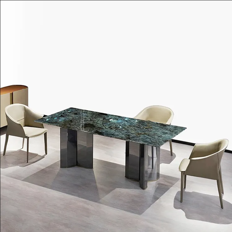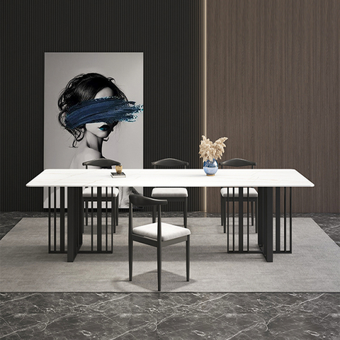 Mesa de comedor de forma Rectangular con tapa de mármol de lujo ligera de estilo nórdico, patas de acero inoxidable, mesa de comedor de 6 plazas