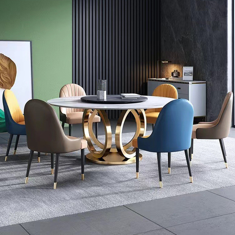 Mesa de comedor y 6 sillas Restaurante de lujo Metal Acero inoxidable Mármol Comedor Juegos Mesas de comedor