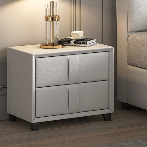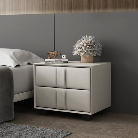 北欧のライト高級レザーベッドサイドテーブルハイエンド無垢材引き出しホームホテルベッドルーム家具
