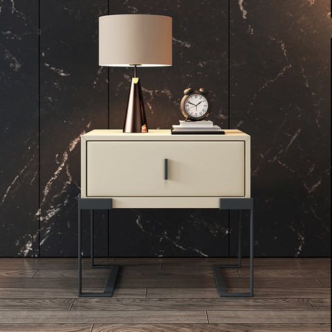 モダンなデザインイタリアのミニマリストスタイルシングル引き出し革現代的なベッドサイドテーブル