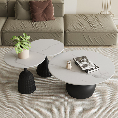ชุดโต๊ะกาแฟตั้งโต๊ะทรงกลมทำจากหินขัดสำหรับห้องนั่งเล่นบ้านรูปทรงเรียบง่าย