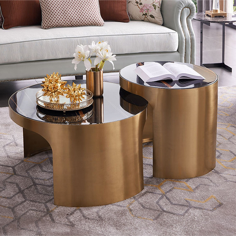 ชุดโต๊ะกาแฟทรงกลมลายหินอ่อน2ชิ้นโต๊ะกลางห้องนั่งเล่นทำจากสแตนเลสสีทองดีไซน์ทันสมัยสำหรับอุตสาหกรรม
