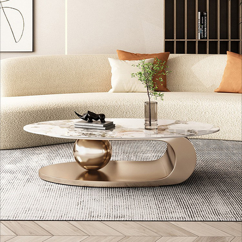 โต๊ะกาแฟทรงรีทำจากสเตนเลสสตีลลายหินอ่อนทรงกลมดีไซน์ใหม่ล่าสุดสไตล์นอร์ดิก